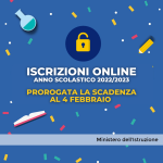 Il termine per le iscrizioni all’anno scolastico 2022/2023 è prorogato online alle ore 20.00 del 4 febbraio 2022. Il Ministero ha preso tale decisione in considerazione del “protrarsi dell’emergenza epidemiologica” e delle connesse difficoltà che possono aver avuto le famiglie nell’effettuare, dunque, le iscrizioni.